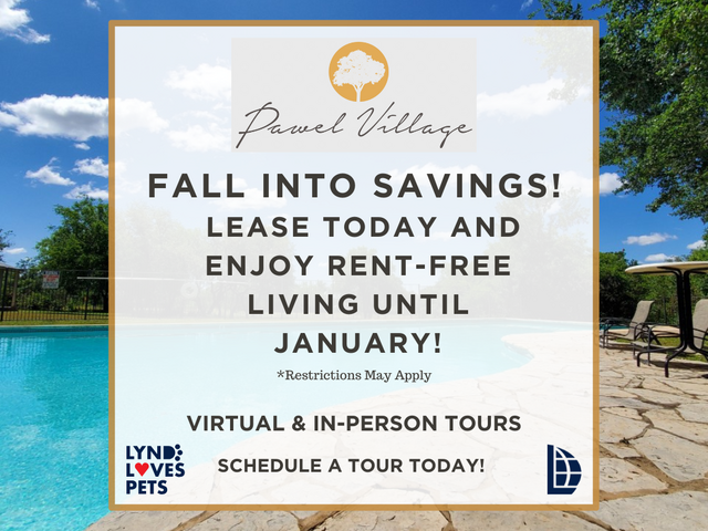 Our Texas Hill-Country inspired apartment homes surrounded by native Texas Live Oaks provide seclusion, comfort and a host of amenities. Pawel Village was designed to combine convenience with peace, quiet and privacy - creating a tranquil retreat-style community.